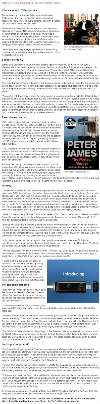 Interview with Peter James (Diabetes.co.uk)