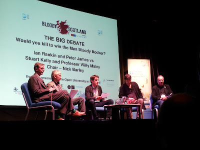Professor Willy Maley took the house by storm. Unfortunately he delivered his speech, in which there was punchline after punchline, so rapidly that I had no time to take copious notes. Besides which, I was laughing too much. Crime writers are being greedy, he said. They already have readers, mega sales, and money from their own prizes. They can’t have the literary Booker as well. He quoted James Kelman’s blistering attack against the genrification of fiction. He also claimed the superiority of the free form and subject matter of literary fiction. A literary novel may contain a crime. A crime novel has no choice.